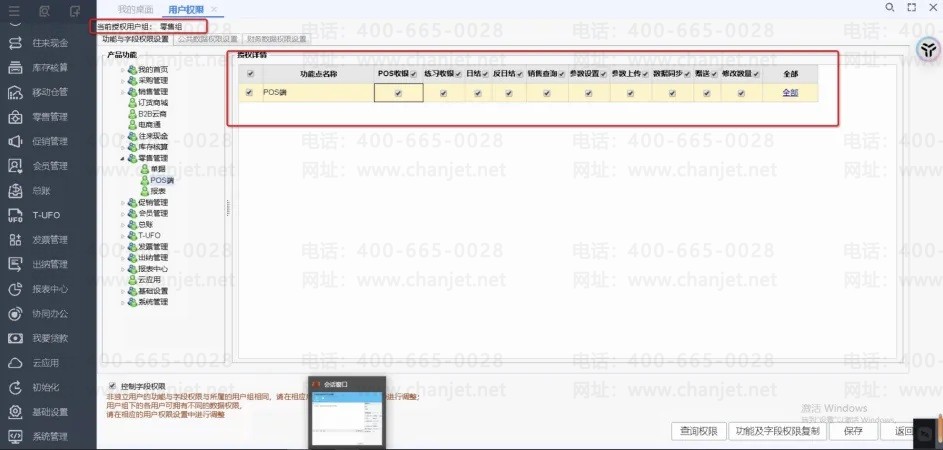 零售组没有勾选零售POS的功能权限