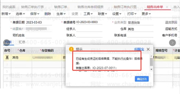 销售出库单提示有后续单据生成凭证,要删除,但是联查该单据是和此单据没有关联的