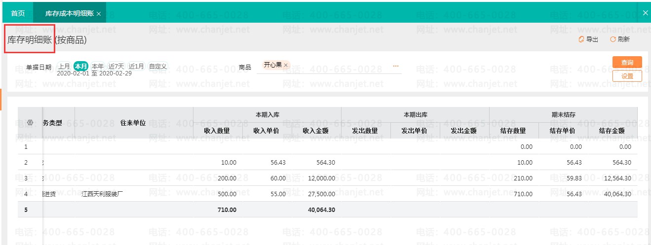 查看某商品的出入库流水,当期期初+当期入库-当期出库数据,流水账表不显示结存