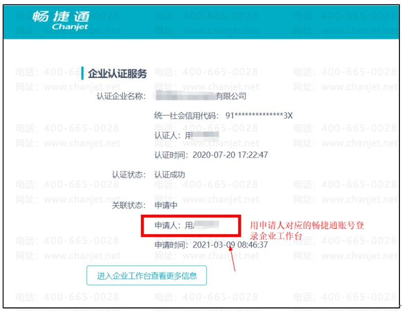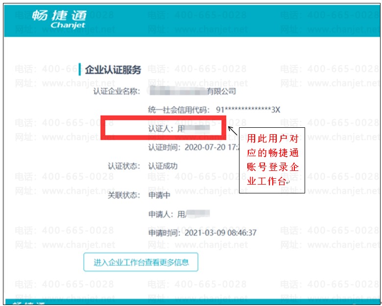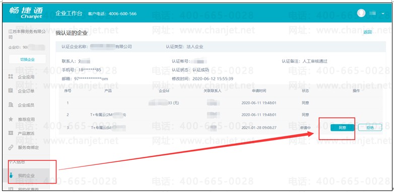 需要第一次认证通过的人登陆【企业工作台】,点击左边【我的企业】-【我认证的企业】,然后点击“同意”即可,如下图: