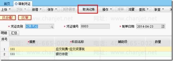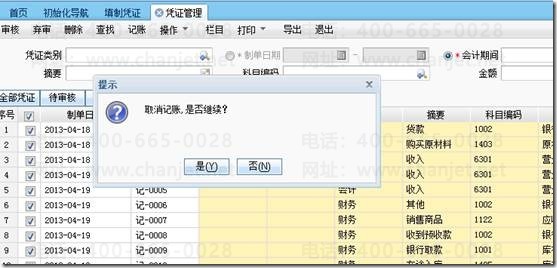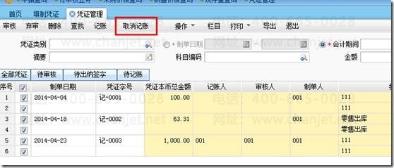 也可以进入凭证管理进行取消记账操作。