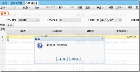 菜单中去掉取消记账按钮,提供取消记账快捷键 CTRL+ALT+H在填制凭证或者凭证管理界面,找到需要取消记账的凭证,按CTRL+ALT+H组合键,即可弹出“取消记账,是否继续”的对话框,点“是”后即可取消记账。