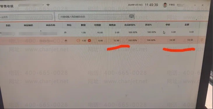 新零售1.0pos端存货带出价格与零售价不一致,零售价12.9,单价却是14.58,并且折扣%是100%