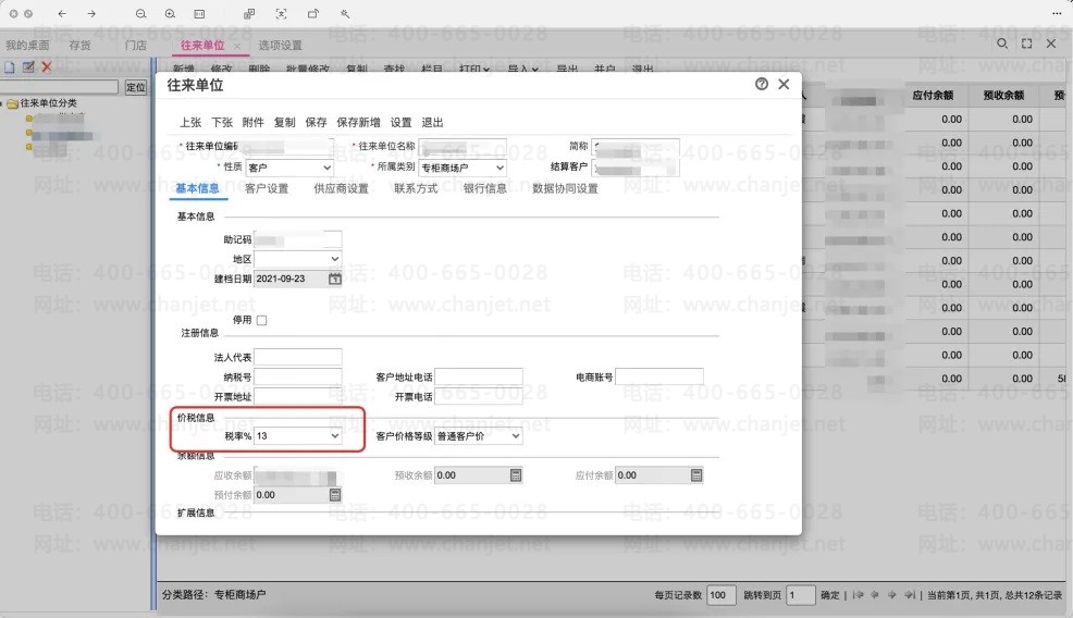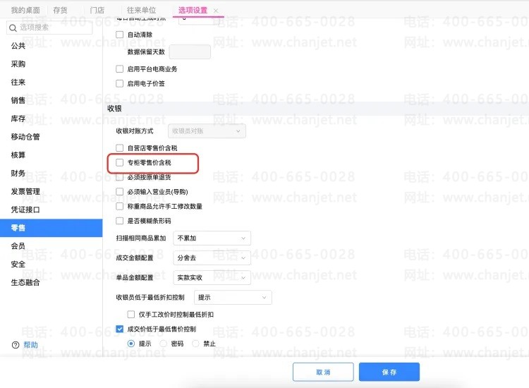 此门店是专柜类型,门店上的结算客户设置了税率为13%,且零售选项“专柜零售价含税”未勾选,即零售价不含税,所以系统又给算了一个税率12.9*(1+13%)=14.58