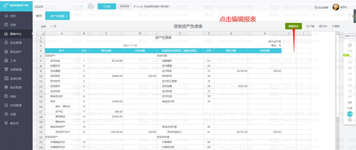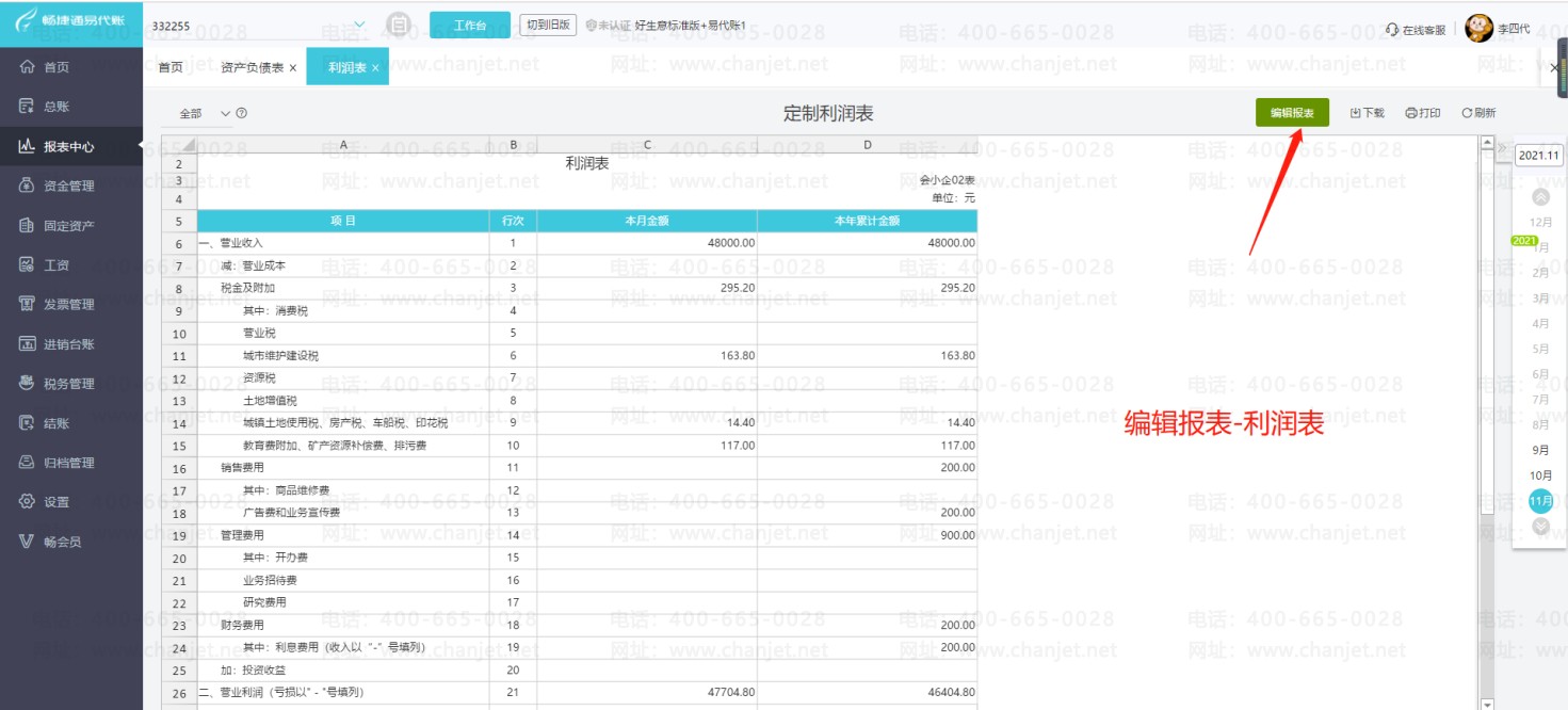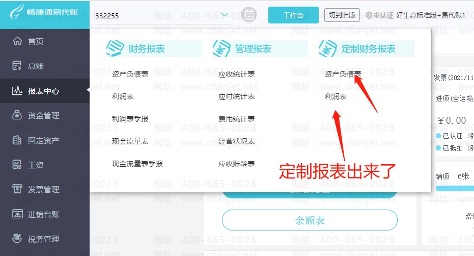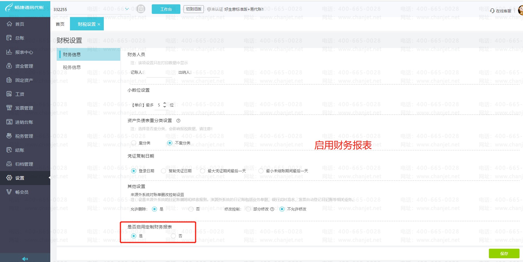 1.设置-财税设置-财务信息-是否启用定制财务报表