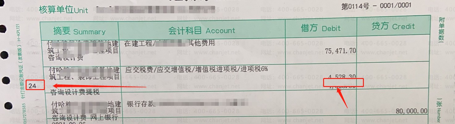 如果凭证的附单据数,是两位数字,那么打印出来的效果是第二行分录中间被隔开了一段距离,这个应该是附单据数所在的行,并且数字在凭证的左侧。