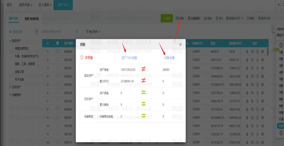 优化固定资产、待摊费用、无形资产卡片和总账对账功能,规范财务合规性