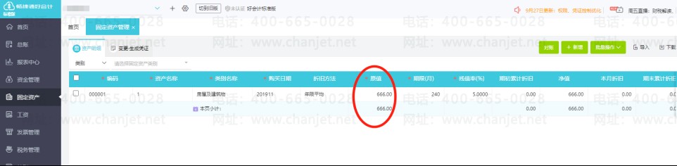 2.录入固定资产原值台账跟总账进行对比发现原值错误: