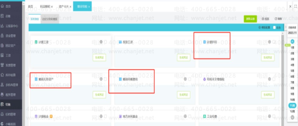 无形资产和待摊费用可根据卡片智能生成计提凭证