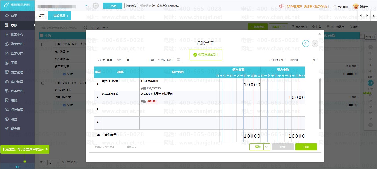 2、登陆张会计账号,进入账簿,点击总账-查看凭证,进行凭证更改即可。