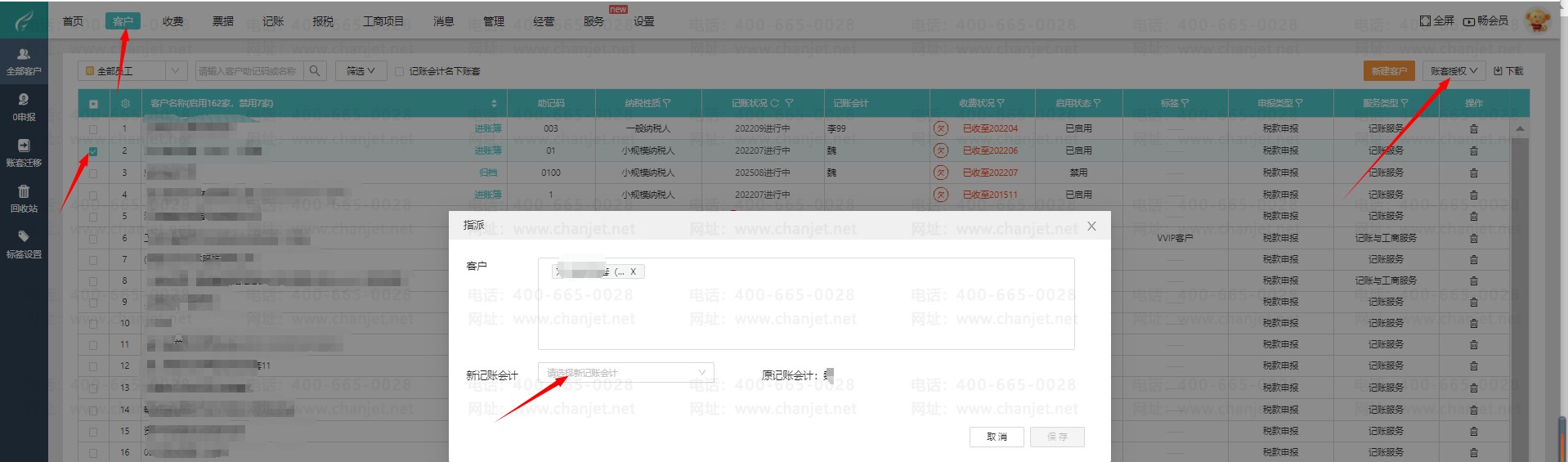 1、需管理员账号登陆易代账工作台,点击账套授权-指派,进行更换指派会计。