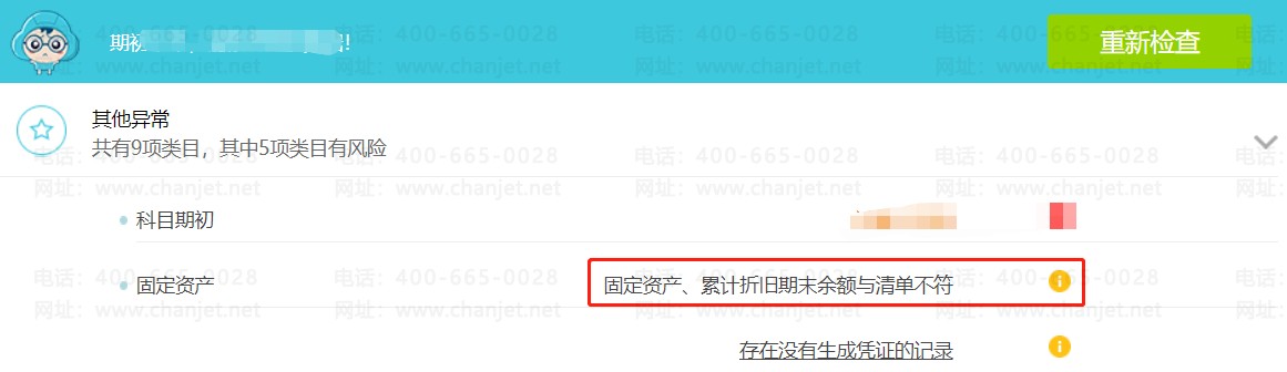 每月月底都要结账,在结账时,点击马上检查后,有提示“固定资产、累计折旧期末余额与清单不符”,为什么会出现这种情况呢?是否影响结账吗?需要去改吗?