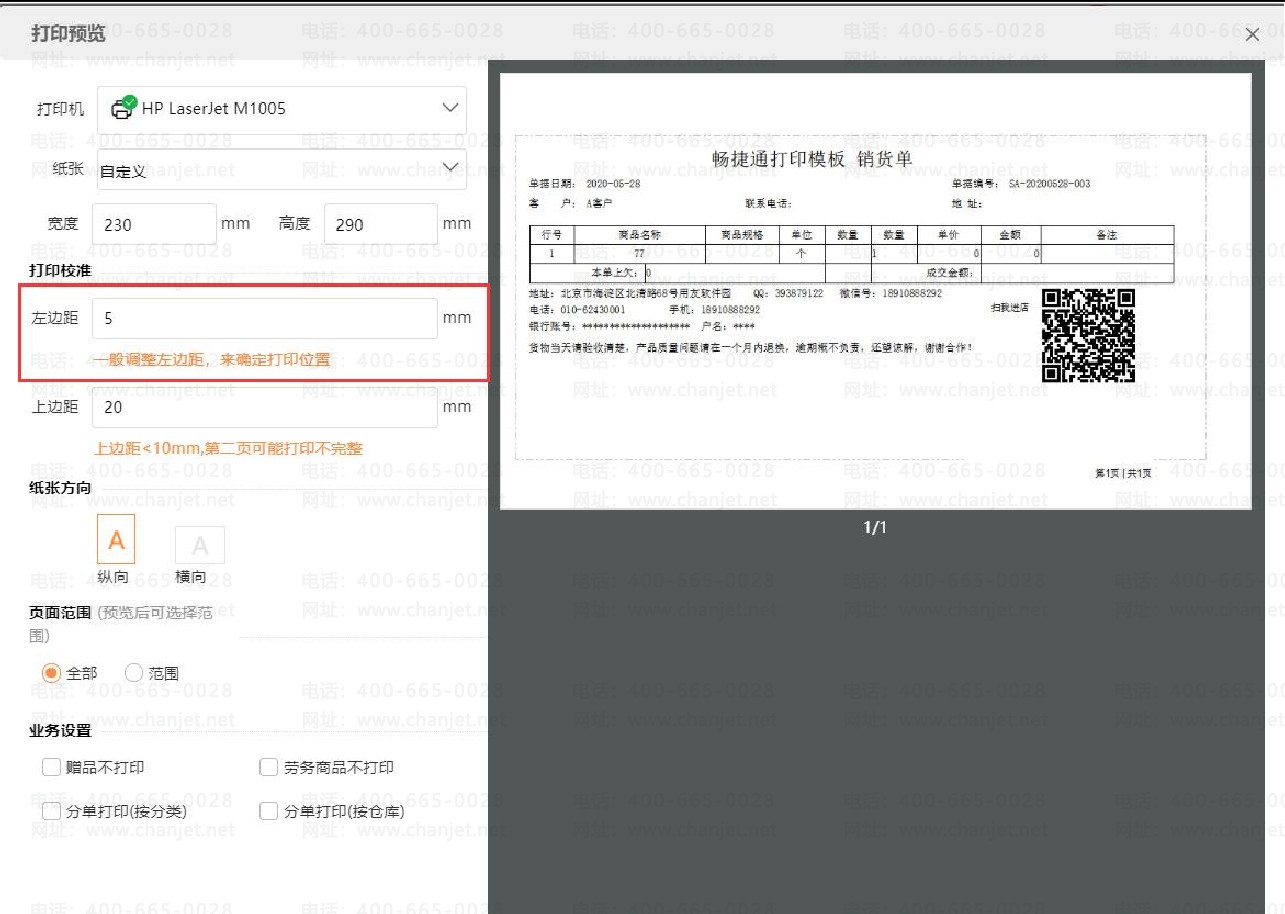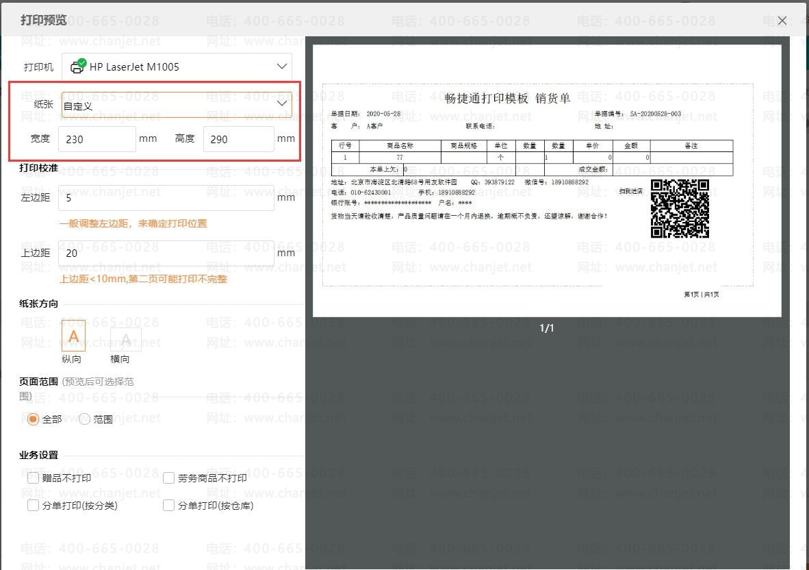 在打印预览界面,调大自定义的宽度: