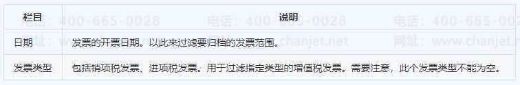 在发票管理主界面上右侧,点击【归档】按钮,弹出归档条件。
