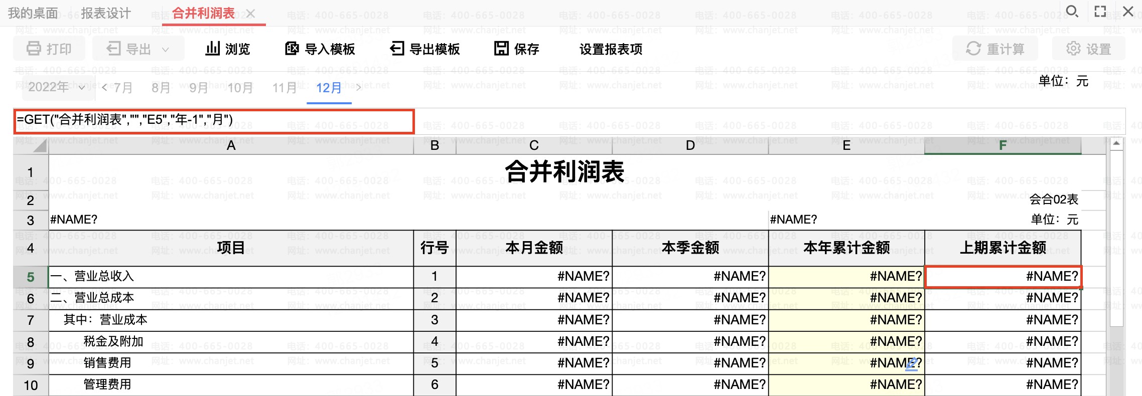 GET("利润表","","E5","年","月","机构=001","合并","财报合并")