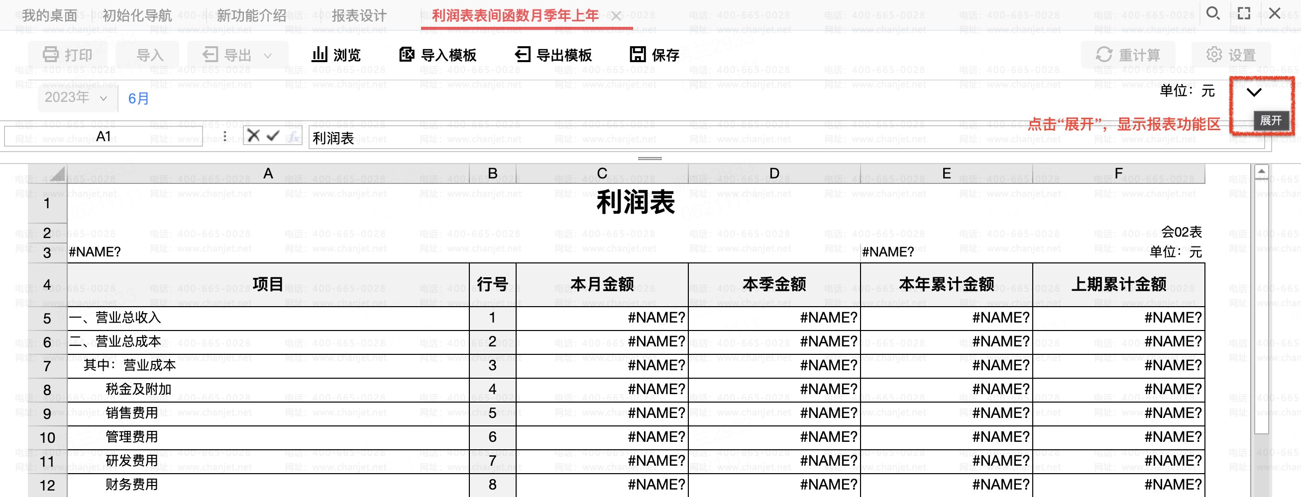 在新财务报表中,直接设计、修改报表模版,比如,设置字体字号对齐方式、单元格合并拆分、设置单元格格式、增加插入删除行列、复制剪切粘贴、锁定窗格、设置千分符等。
