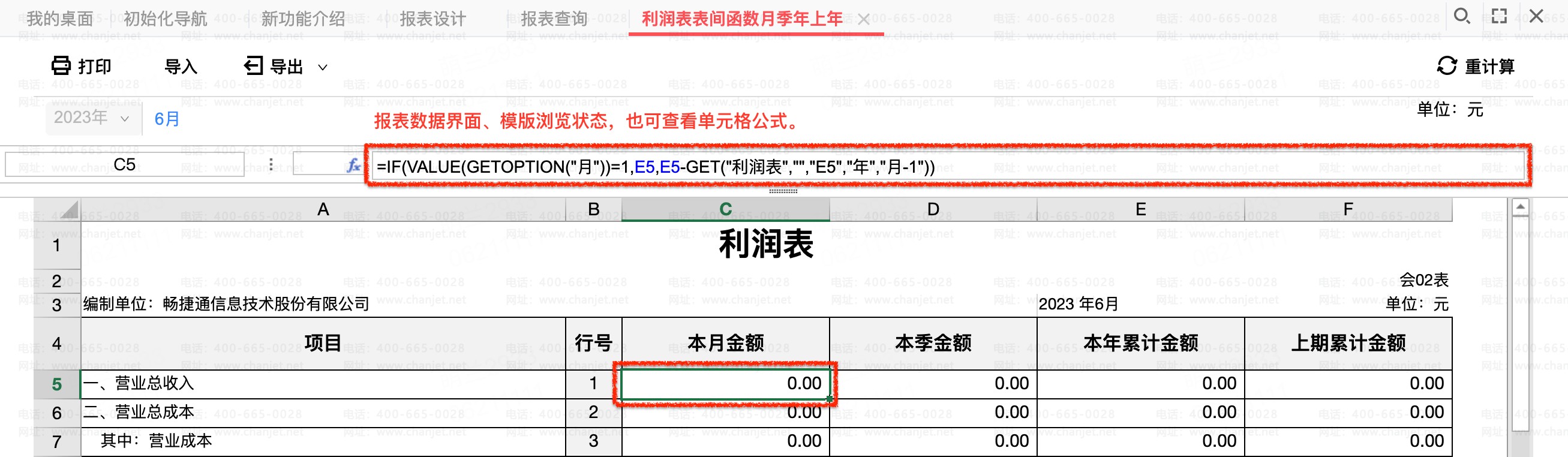 报表数据界面、模版浏览状态,也可查看单元格公式。