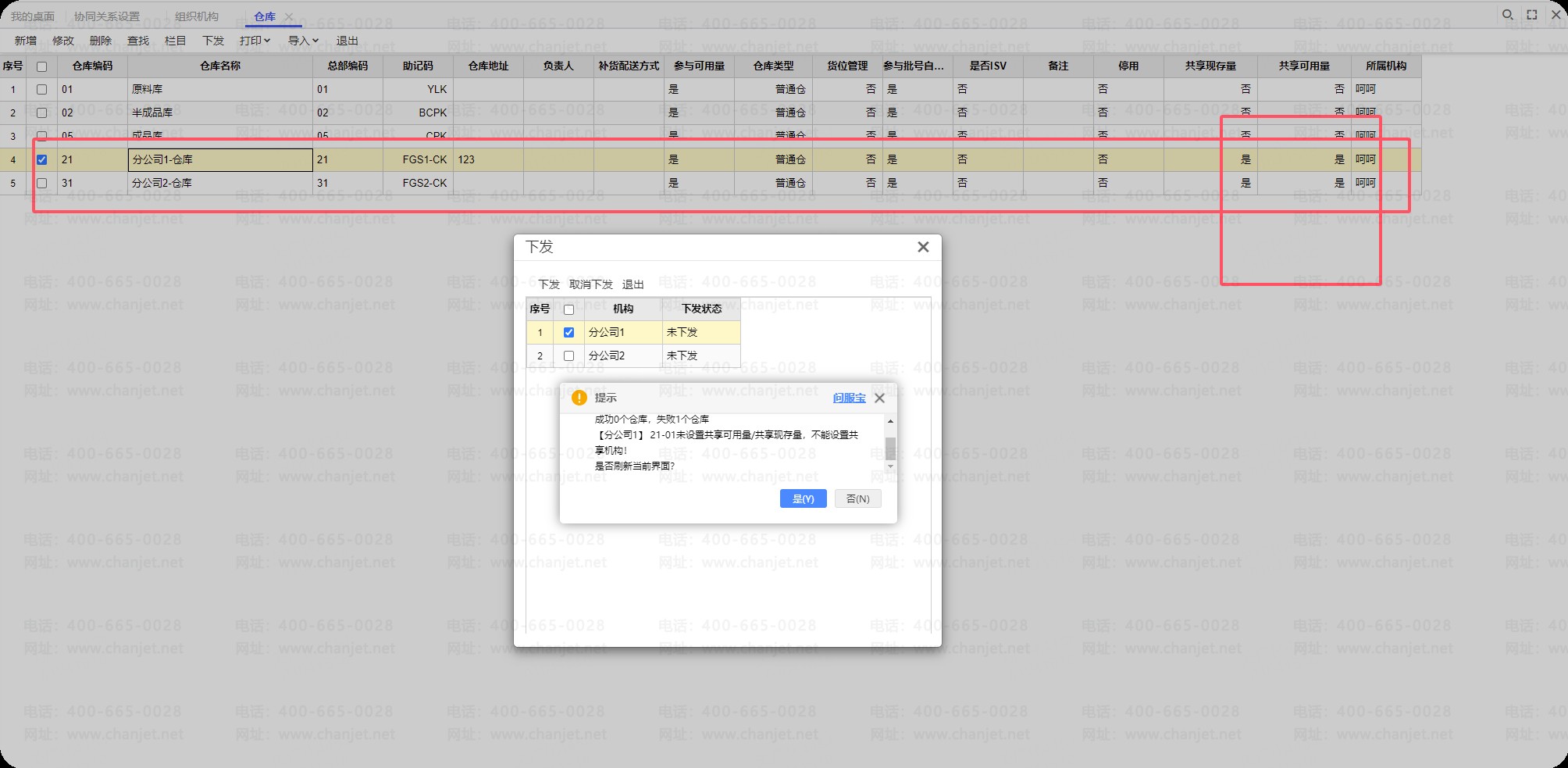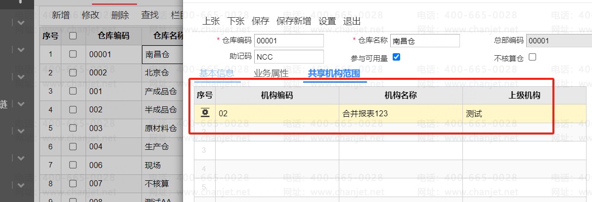 解决方法:确定仓库档案中勾选了共享可用量/共享现存量的话,看下共享机构范围是否有设置。