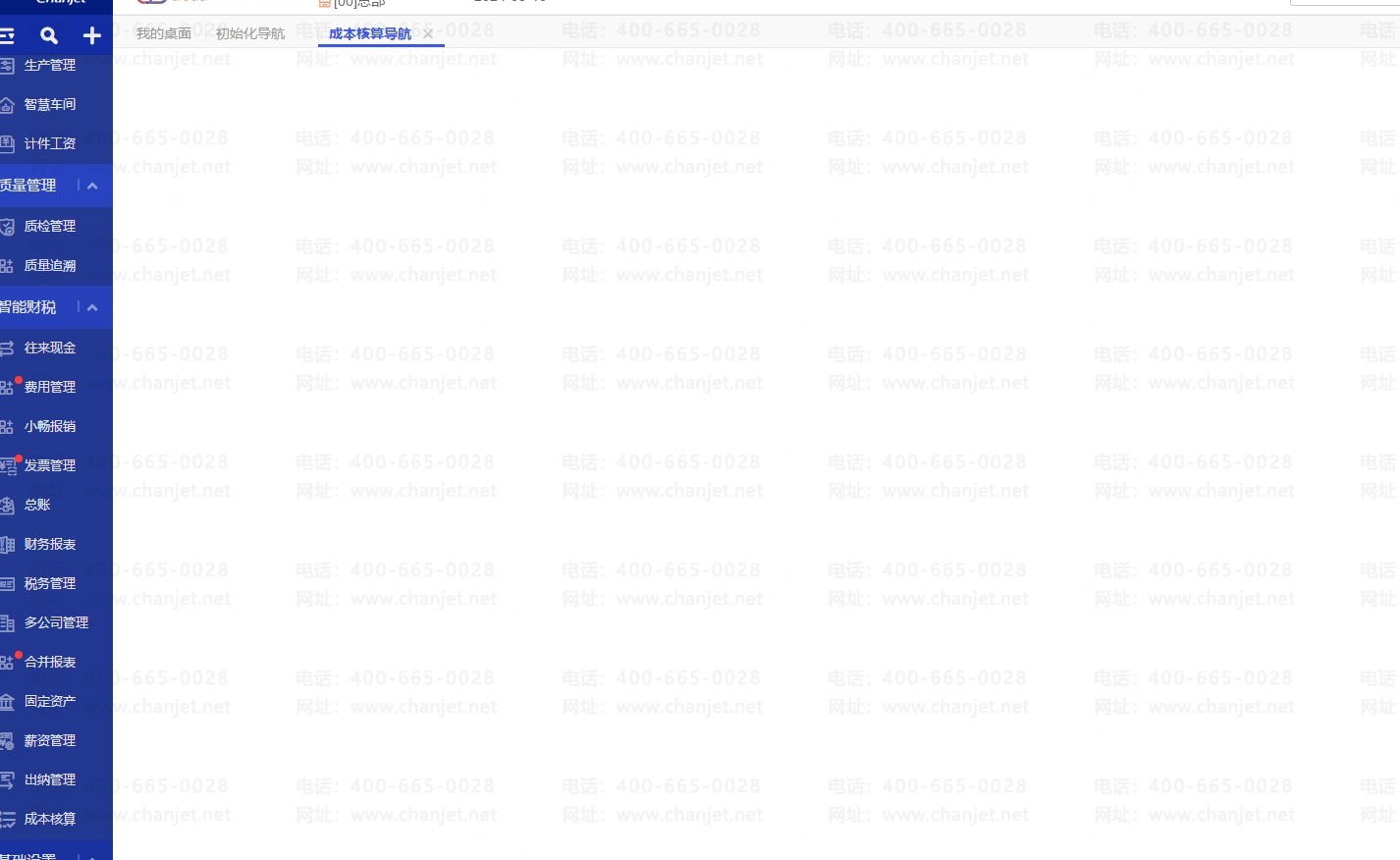 T+浏览器打开成本管理模块的成本核算导航,显示空白,什么也没有。