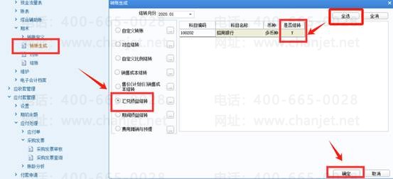 6、月底进行汇总损益结转,点击总账-期末-转账生成,选择汇况损益结转,全选并确定就可以生成凭证了,如图下: