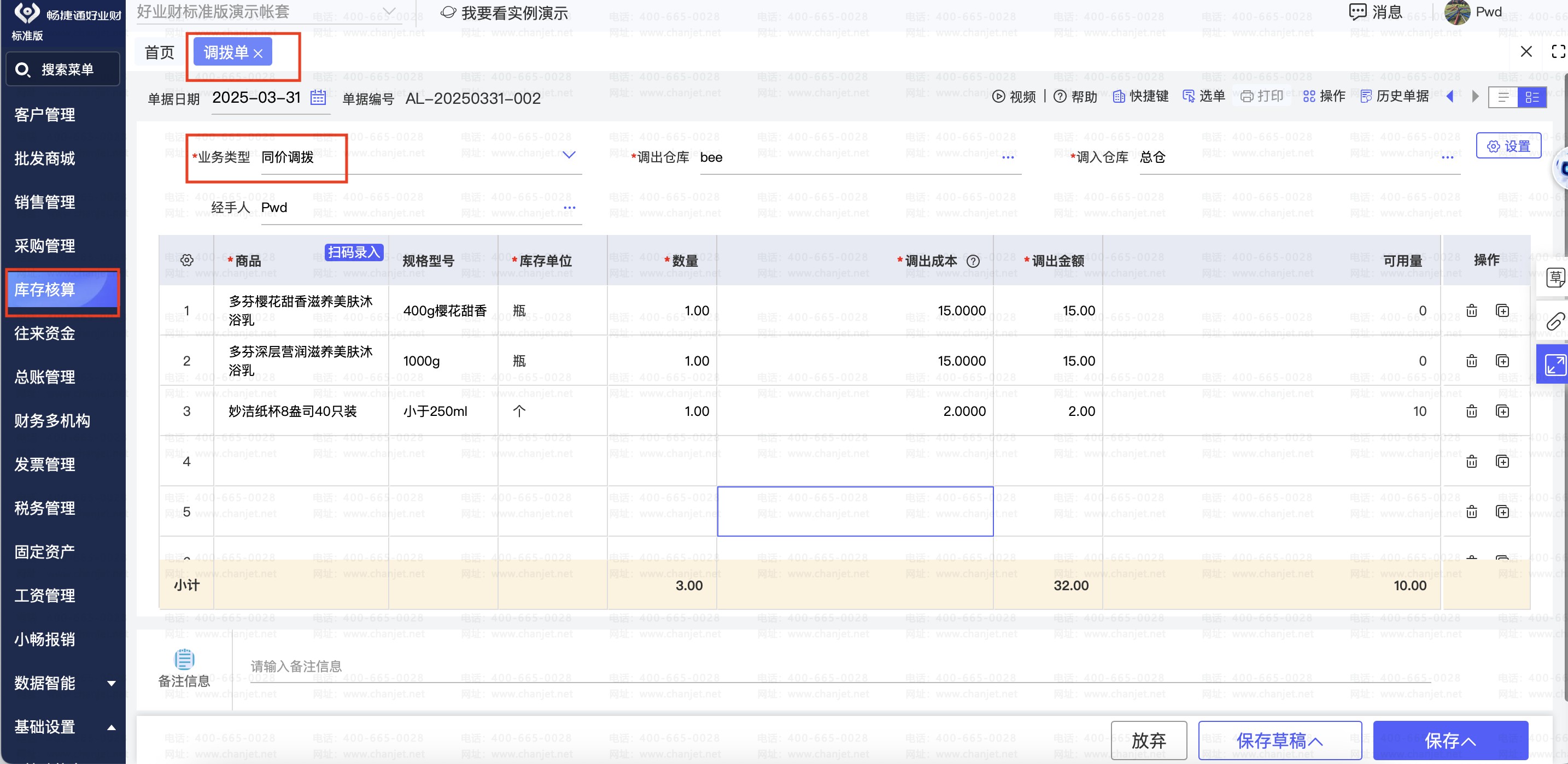 3.跨仓调拨,库存精准同步