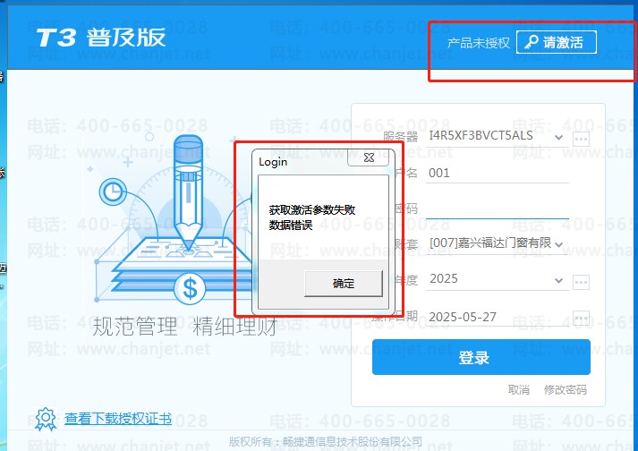 计算机全盘搜索license.chanjet,删除这个授权文件,重启软件服务后重新激活,