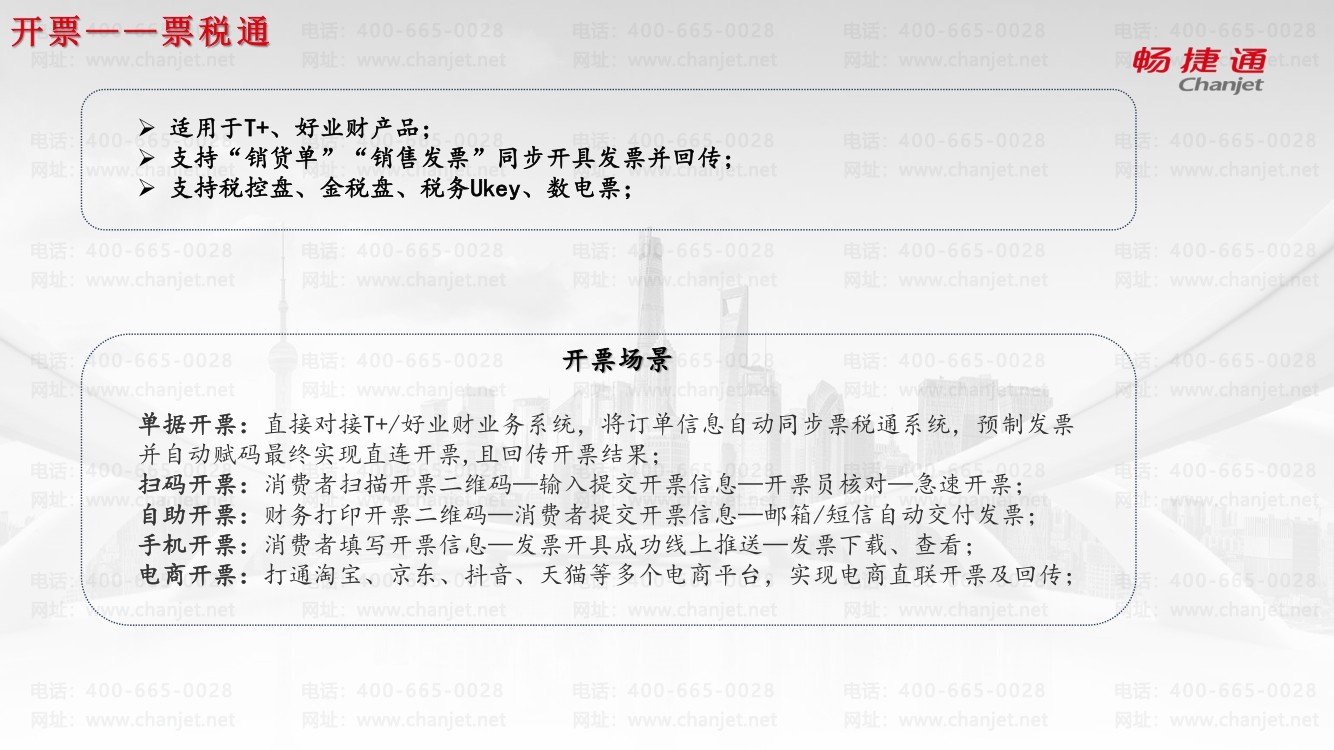 ➢支持“销货单”“销售发票”同步开具发票并回传;➢支持税控盘、金税盘、税务Ukey、数电票;