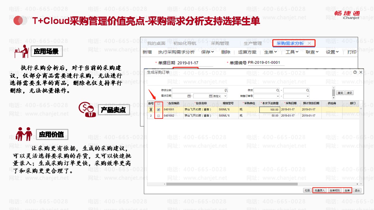 T+Cloud采购管理价值亮点-采购需求分析支持选择生单
