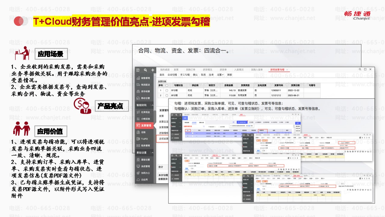 T+Cloud财务管理价值亮点-进项发票勾稽