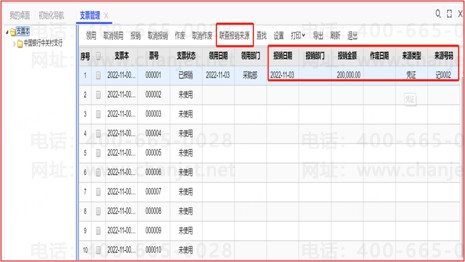 则支票管理中自动为该支票更新报销状态,并可以联查报销来源。