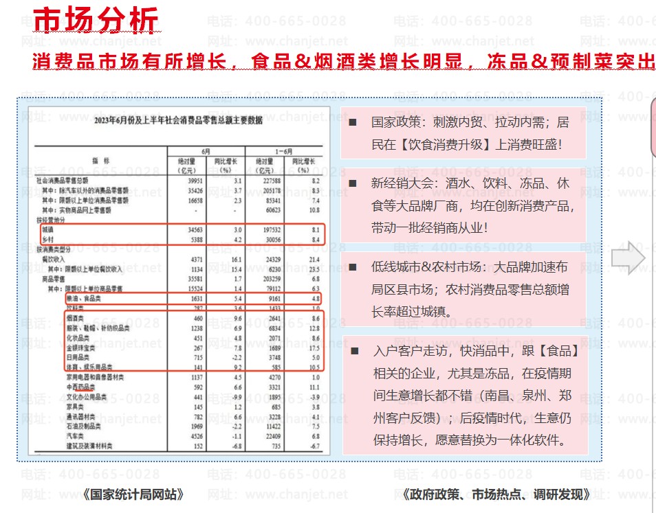 消费品市场有所增长,食品&烟酒类增长明显,冻品&预制菜突出