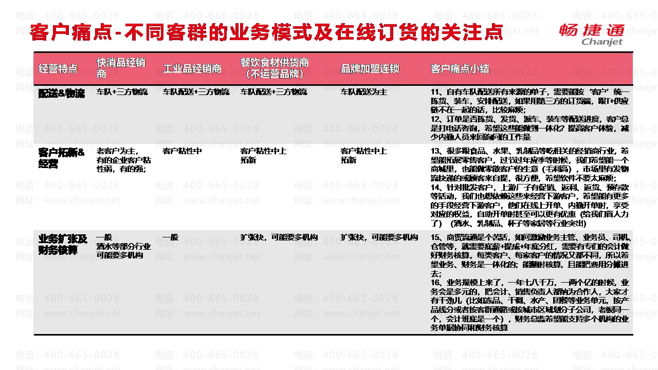 客户痛点-不同客群的业务模式及在线订货的关注点
