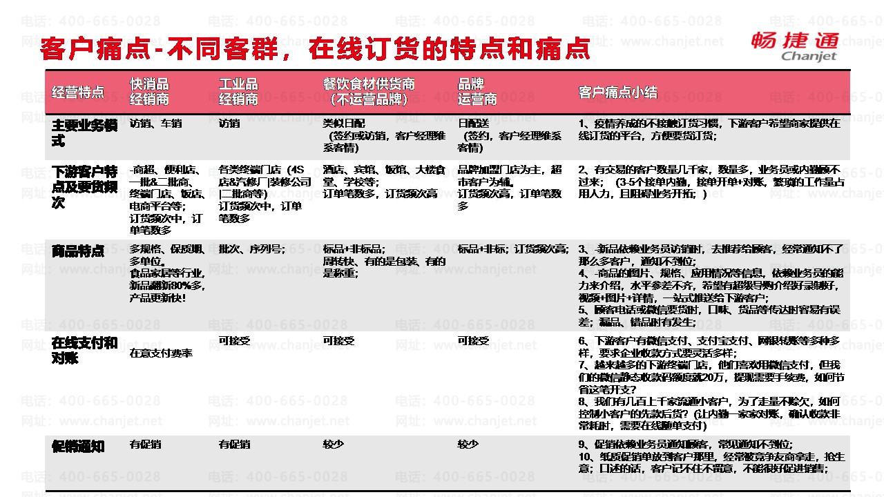 客户痛点-不同客群,在线订货的特点和痛点
