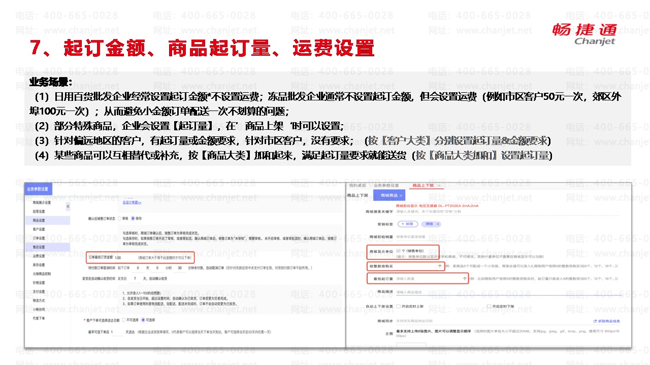 (1)日用百货批发企业经常设置起订金额*不设置运费;冻品批发企业通常不设置起订金额,但会设置运费(例如市区客户50元一次,郊区外埠100元一次);从而避免小金额订单配送一次不划算的问题;