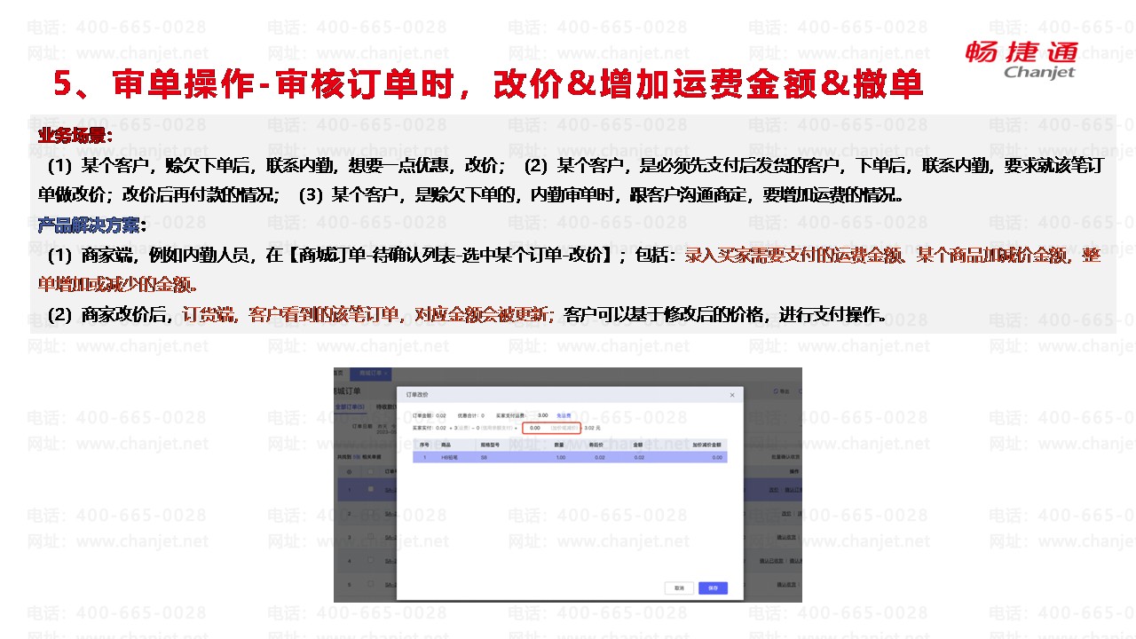 5、审单操作-审核订单时,改价&增加运费金额&撤单