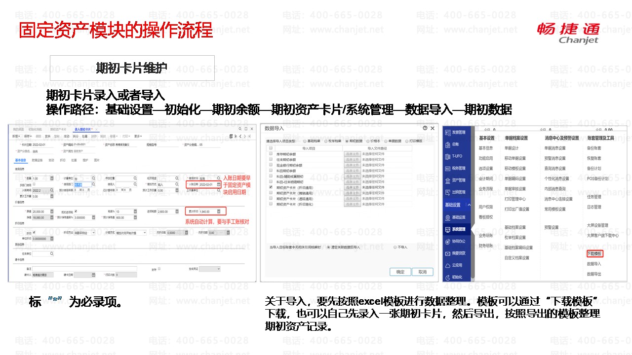 操作路径:基础设置—初始化—期初余额—期初资产卡片/系统管理—数据导入—期初数据