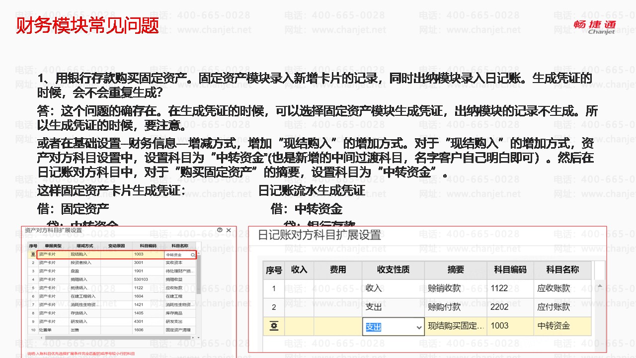 1、用银行存款购买固定资产。固定资产模块录入新增卡片的记录,同时出纳模块录入日记账。生成凭证的时候,会不会重复生成?