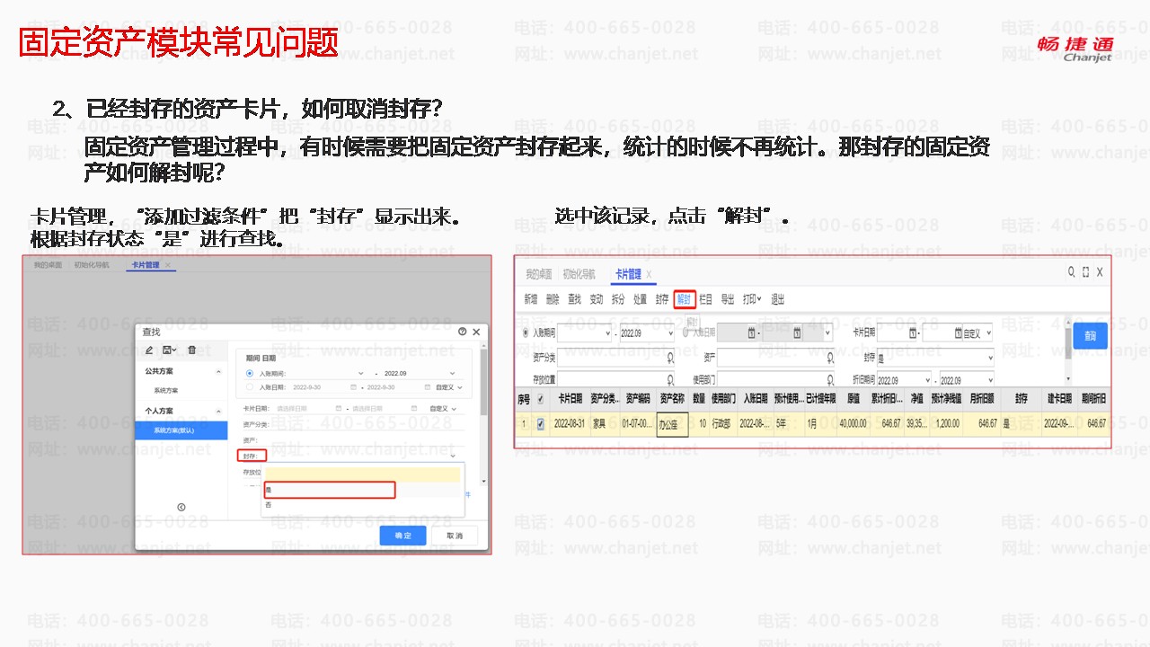 2、已经封存的资产卡片,如何取消封存?