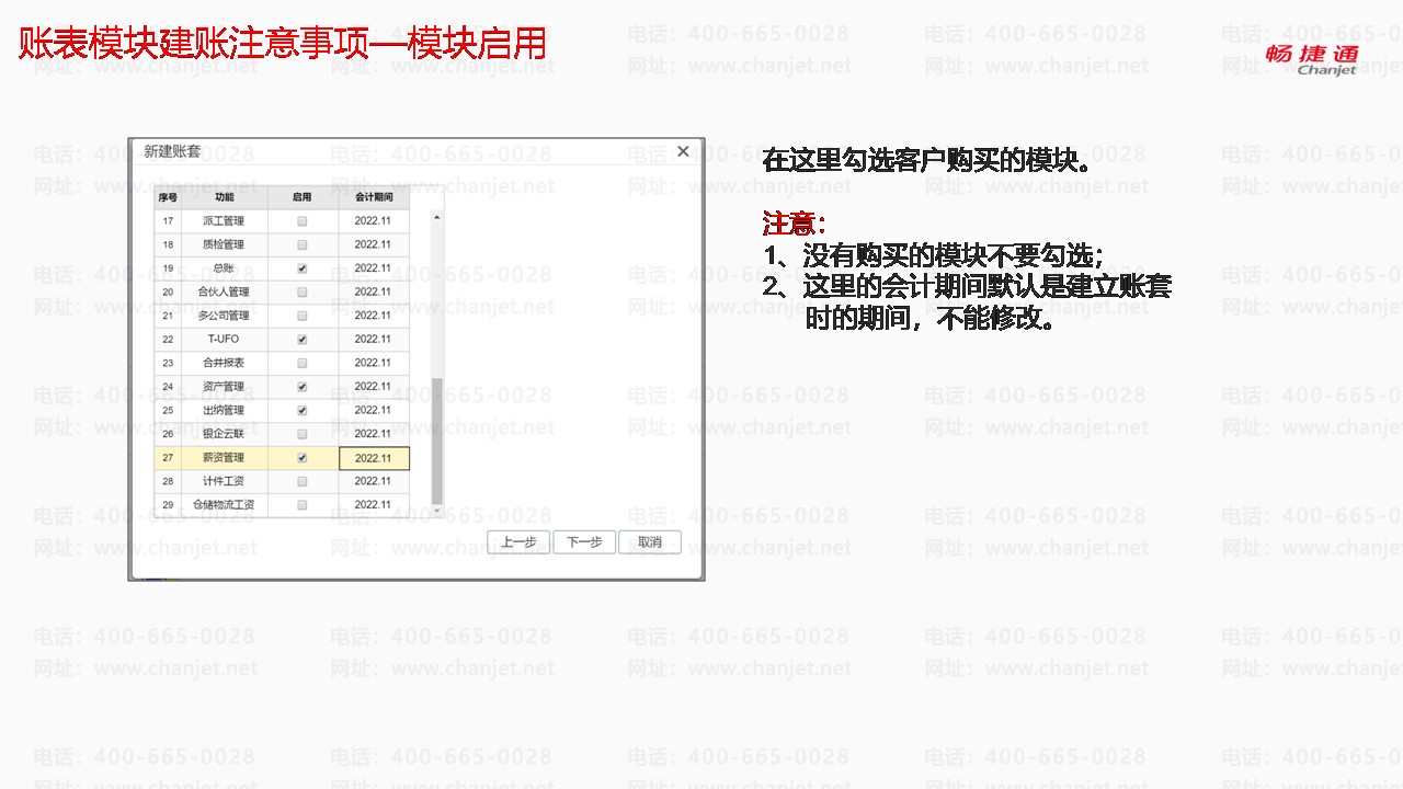 账表模块建账注意事项—模块启用