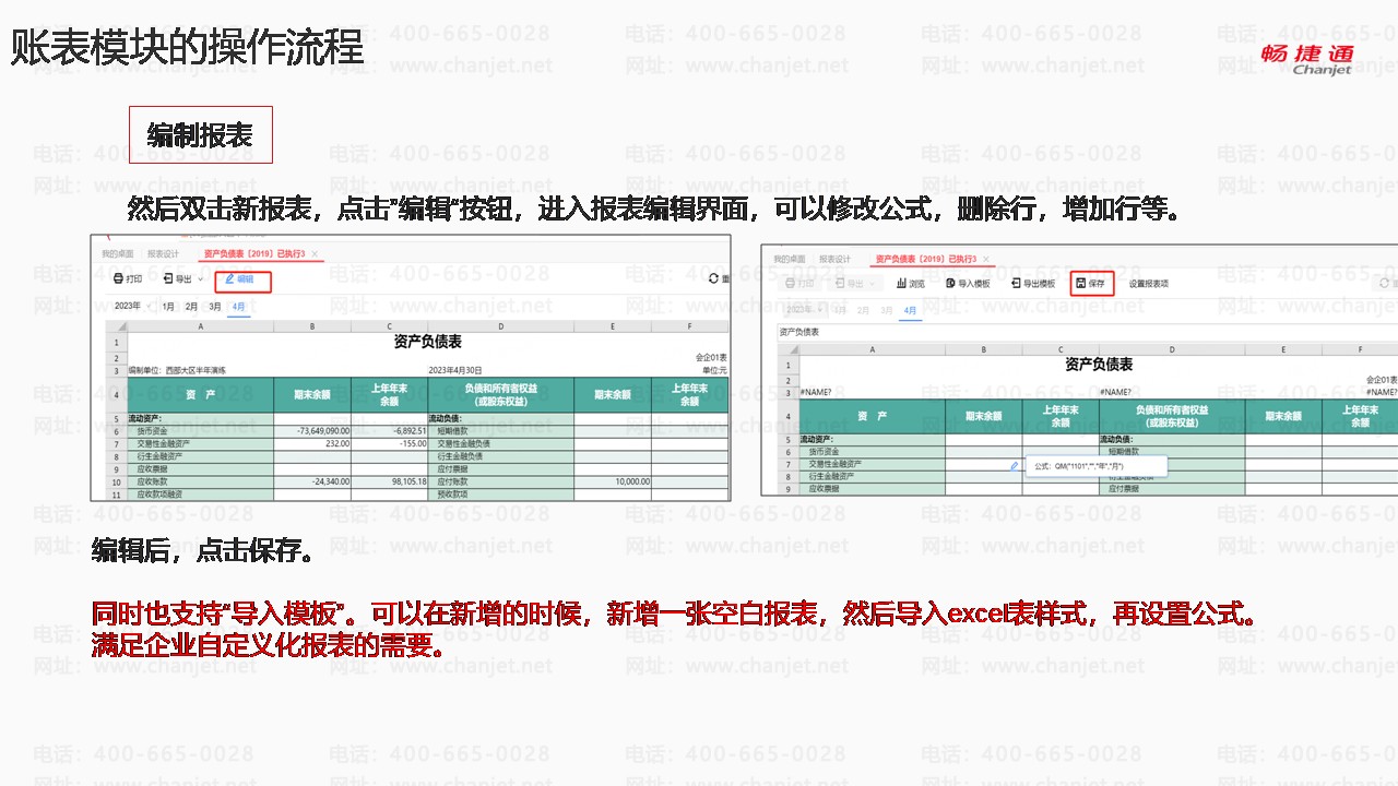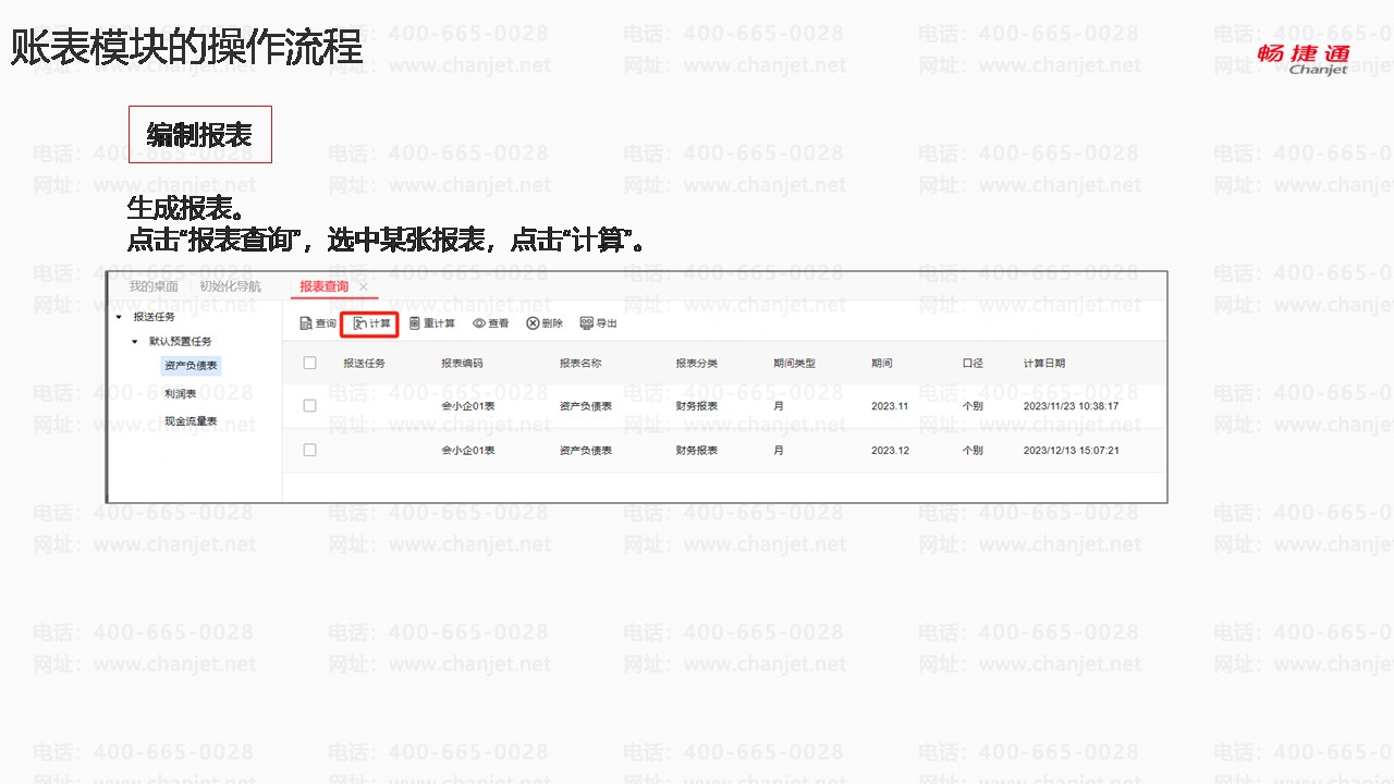 账表模块的操作流程:编制报表