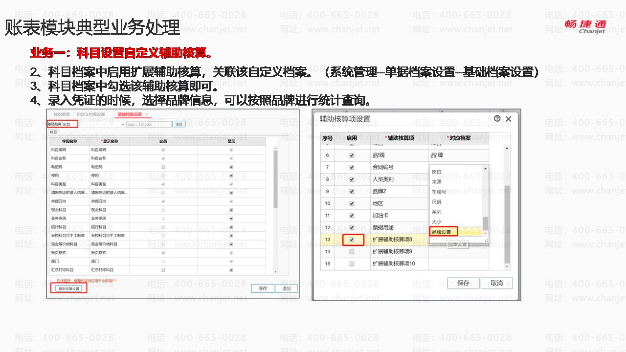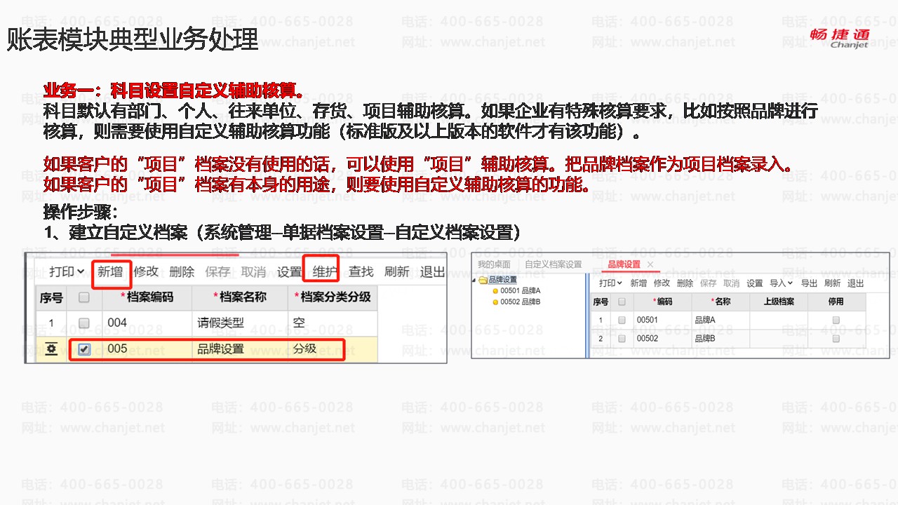 如果客户的“项目”档案没有使用的话,可以使用“项目”辅助核算。把品牌档案作为项目档案录入。