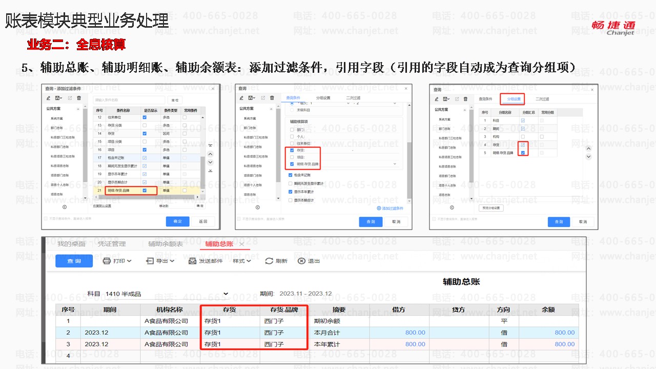 5、辅助总账、辅助明细账、辅助余额表:添加过滤条件,引用字段(引用的字段自动成为查询分组项)