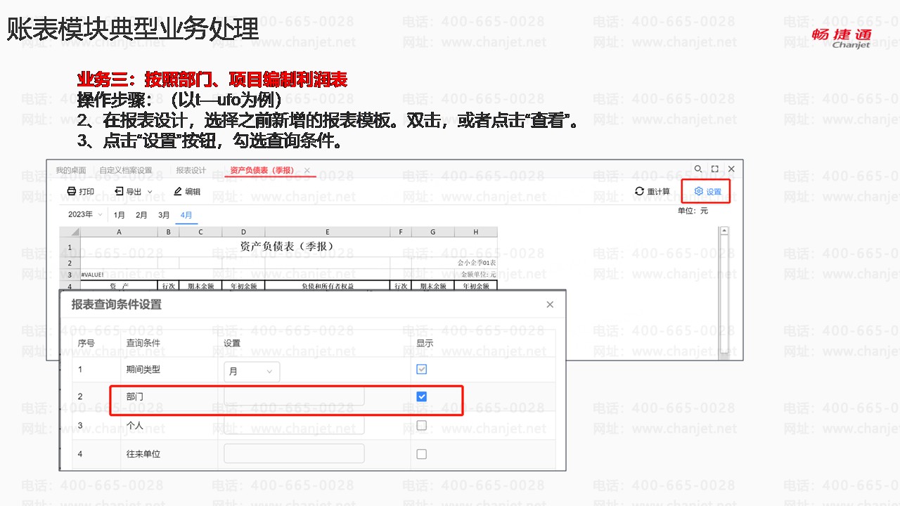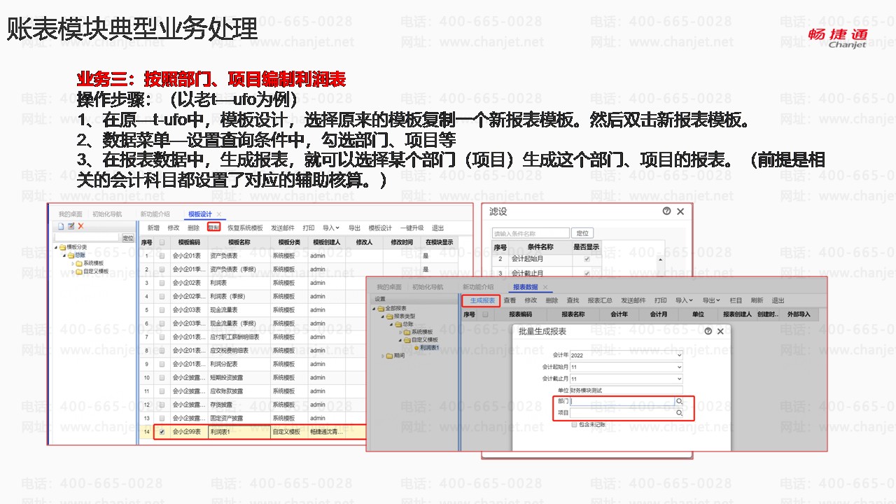 业务三:按照部门、项目编制利润表