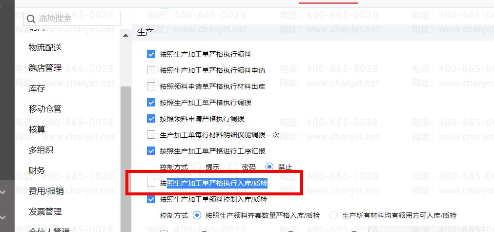 可以勾选选项设置中,勾选“按照生产加工单严格执行入库/质检”
