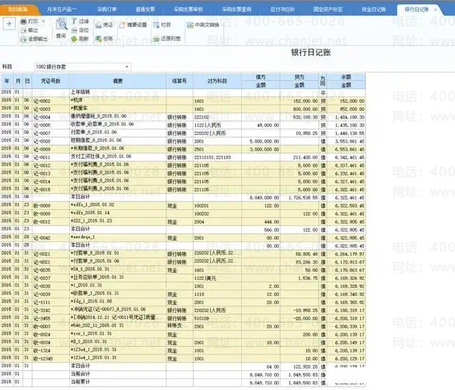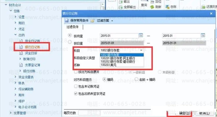 1) 在总账-出纳-银行日记账里可以查询银行科目的日记账。