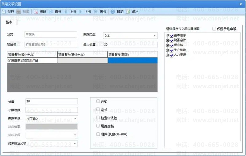 长度:只对文本类型的扩展自定义项有效,不可为空。