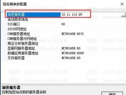 (路径:U8应用服务器配置工具- 服务器参数配置—加密服务器)