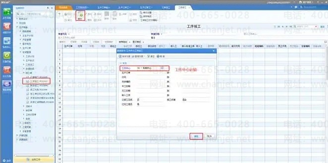 2、工序报工,参照生成报工必须选择一个工作中心进行报工,在报工单表体维护对应的数据后保存即可报工完成。