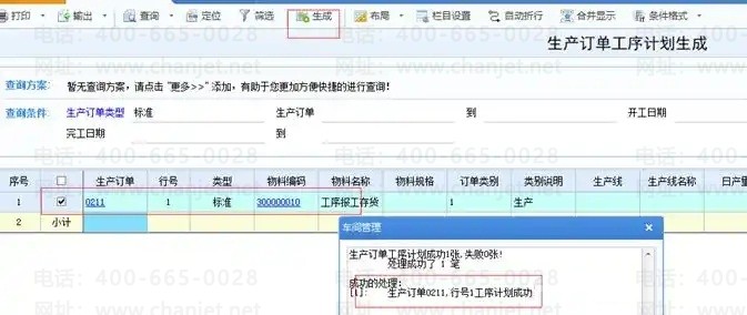 首先可以通过在生产订单工序计划生成界面,选择已经生产订单点击生成按钮,
