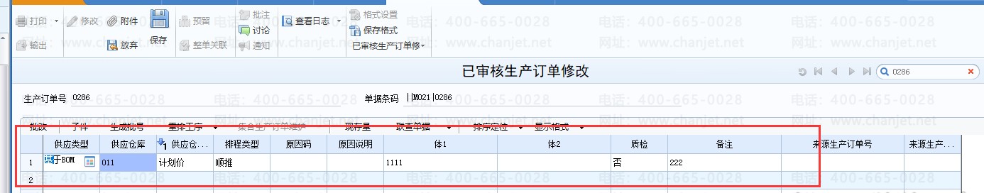 前言:已审核生产订单修改适用于单据已经审核、领料、产品入库了。不方便弃审或删除已经发生的业务。但是需要对生产订单操作变更字段数据或者增加修改子件数量。减少对于已发生生产订单修改的麻烦,类似与单据的变更功能。